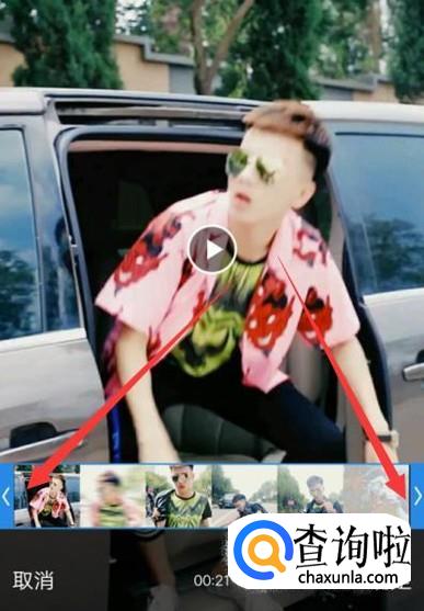 进入之后,拖动图示位置的箭头,即可调整视频的长短,调整好之后点击“确定”即可完成编辑,如图所示。