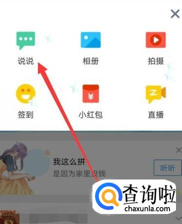 打开之后,点击“说说”,进入下一页面,如图所示。