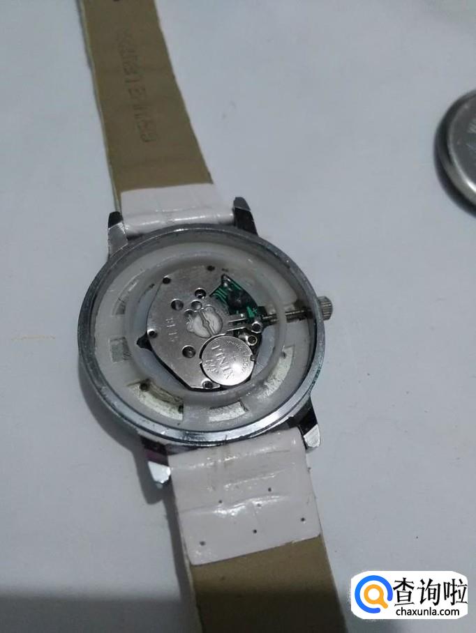 翘开表盖后,可以看到电池侧面有一个弹性的金属小棍卡住电池。