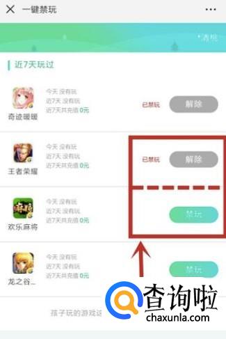 点击超级家长→一键禁玩→设置完成。
