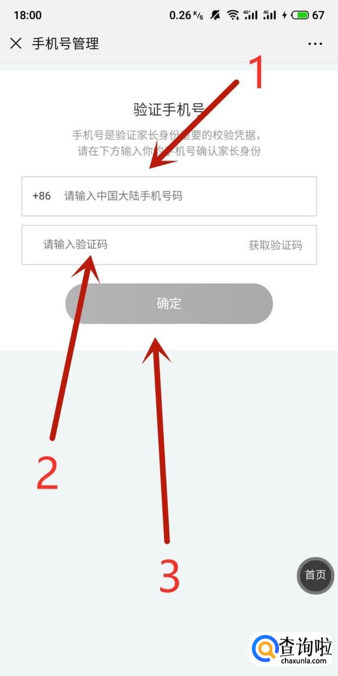 进入之后输入“绑定手机号码”,点击“获取验证码”并将其填写上,再点击“确定”,如图所示。