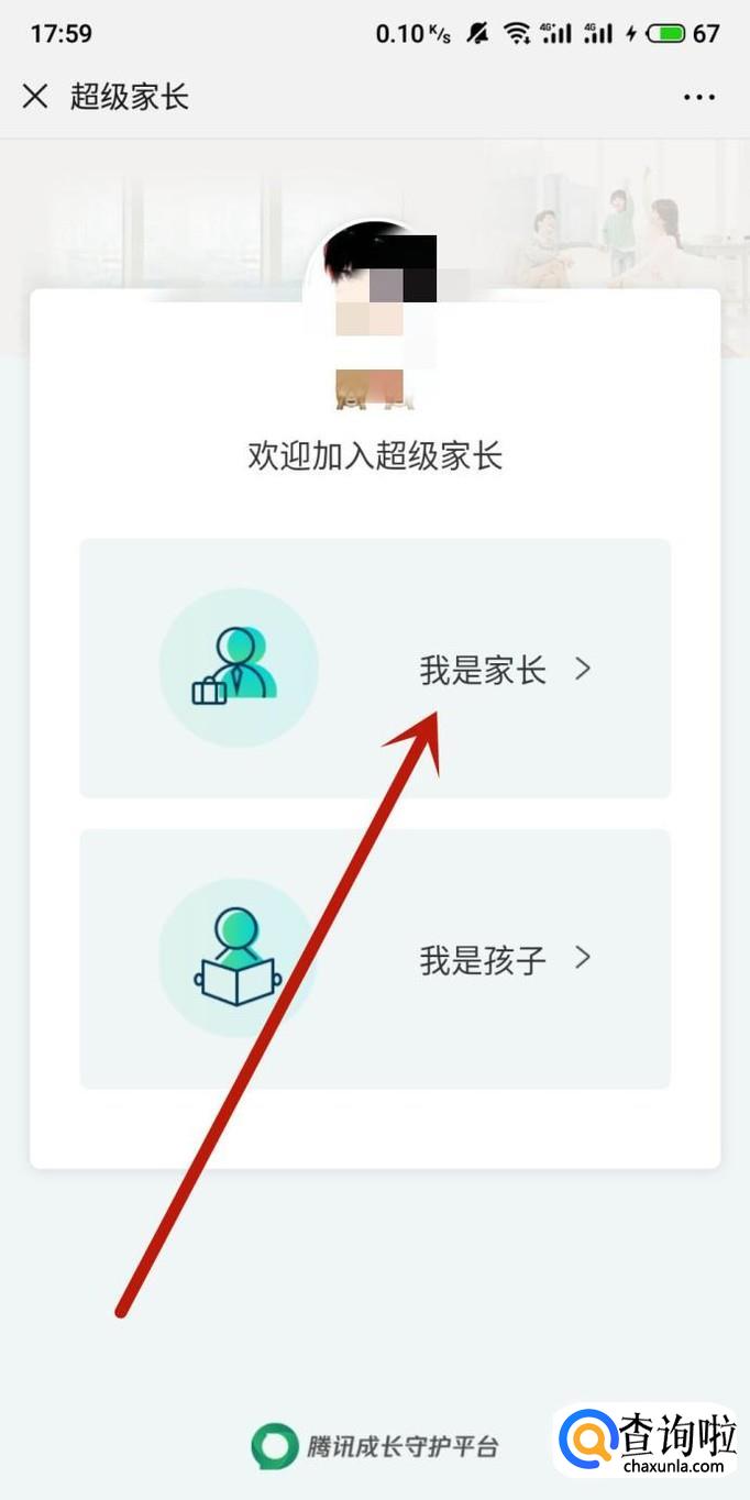 进入之后,点击“我是家长”,如图所示。
