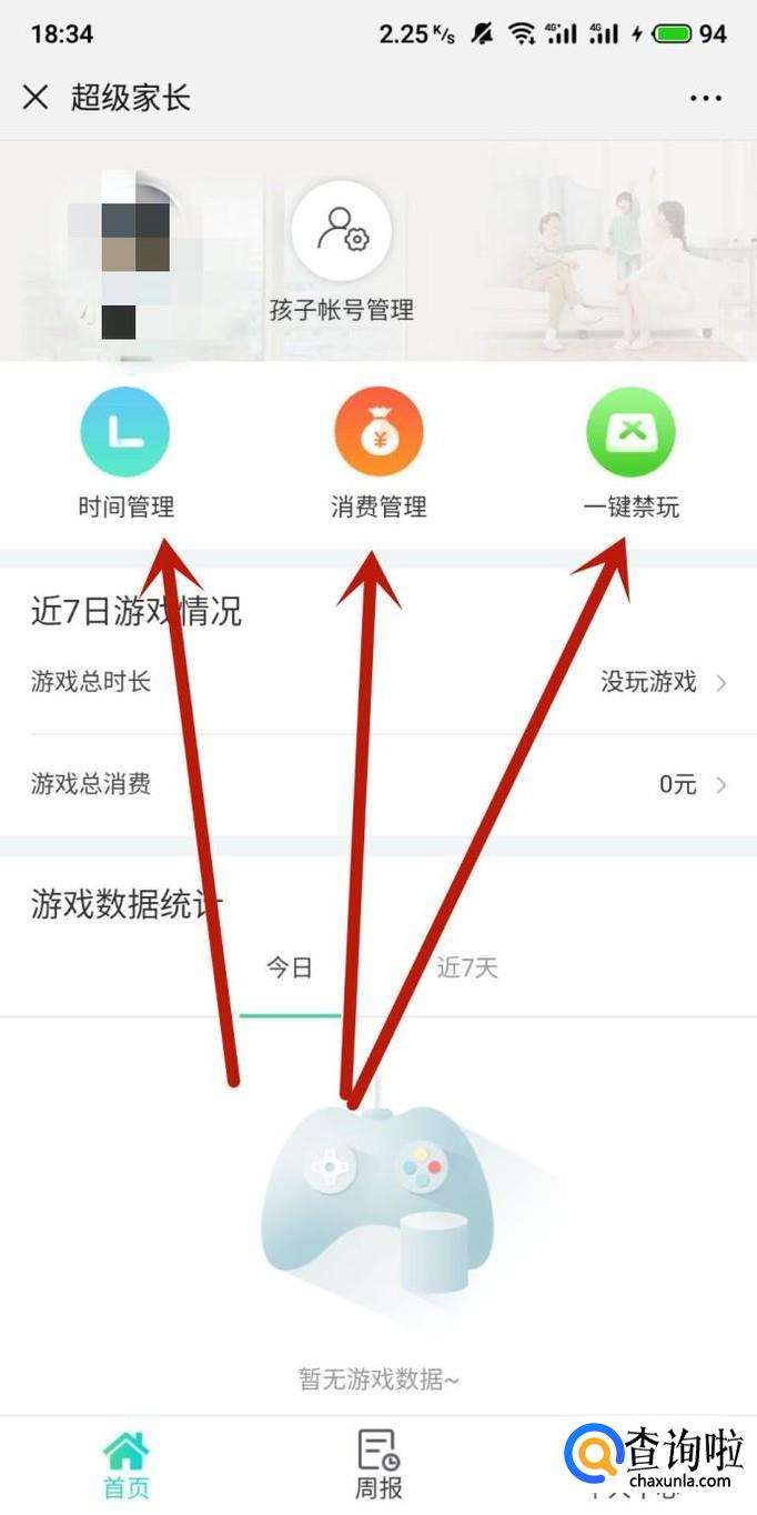 绑定成功之后,超级家长页面即可看到几种管理功能。
