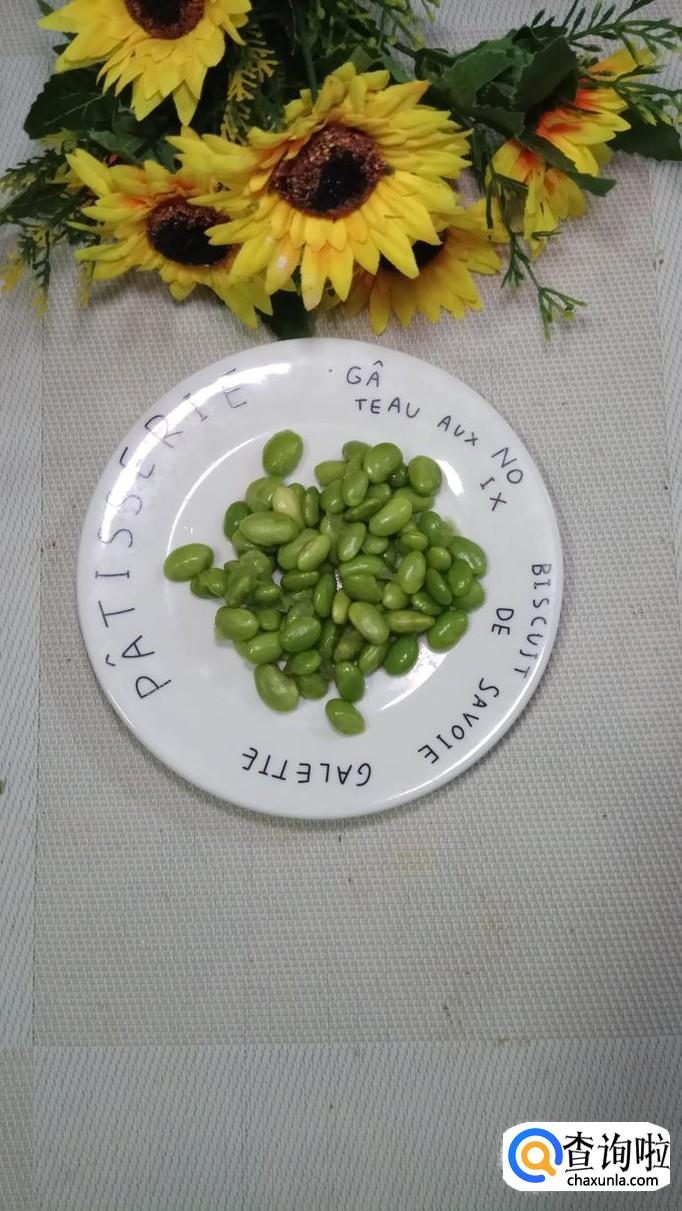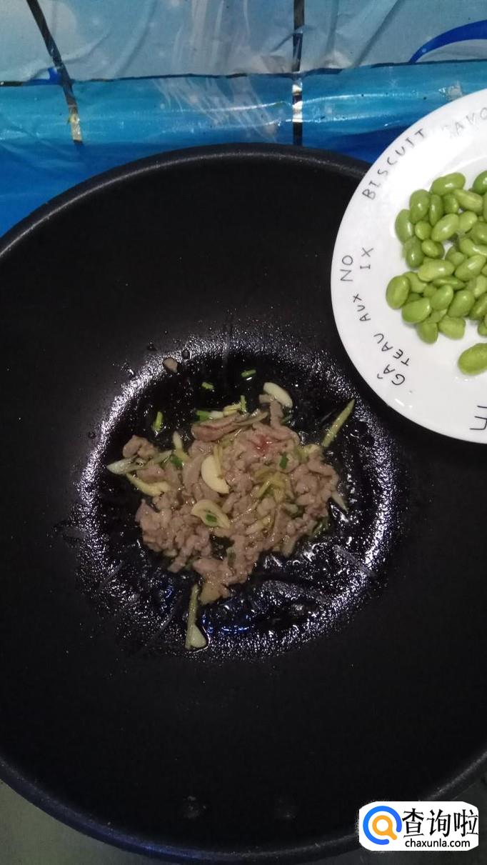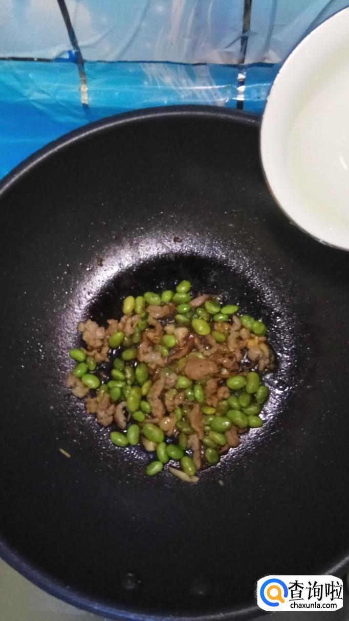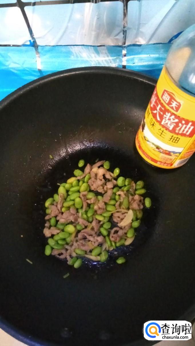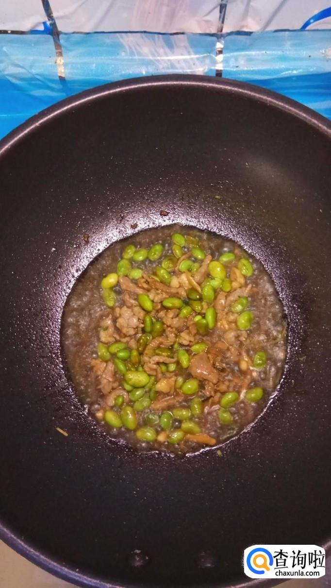 准备吃点毛豆,将外壳去掉,洗净后放入锅中拌炒均匀,可以加少许生抽上色。