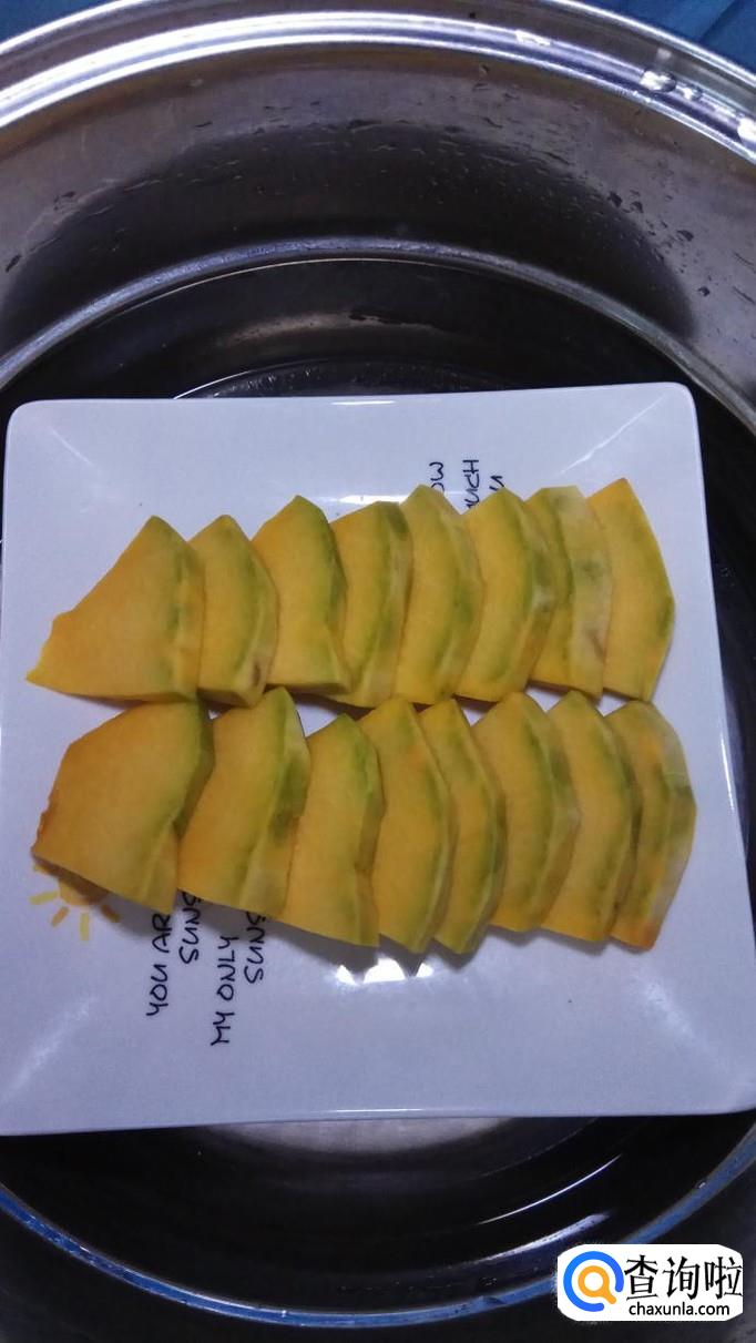 将南瓜放蒸锅中,蒸15分钟,蒸熟后端出备用。