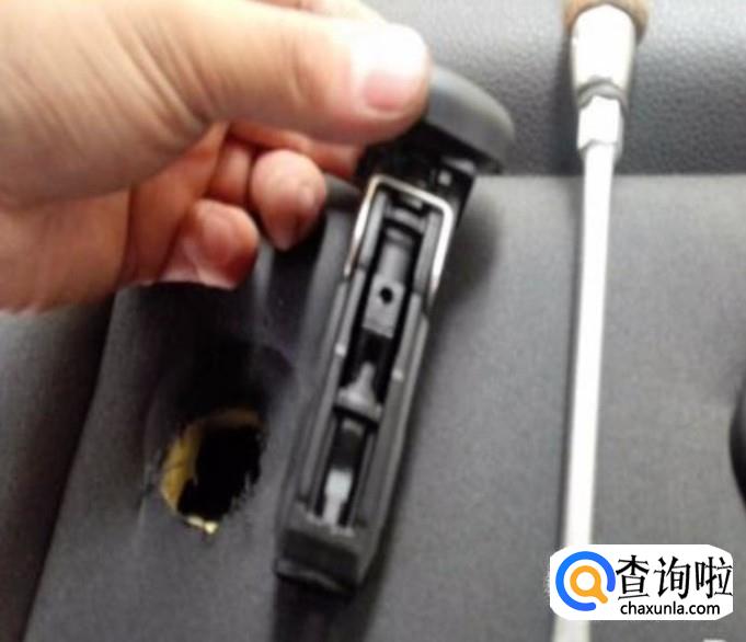 如图,首先把按钮周围的布料往下按,露出一部分,取出大一字改锥伸到按钮下方,用力往里撬,另个手往上抬按钮.