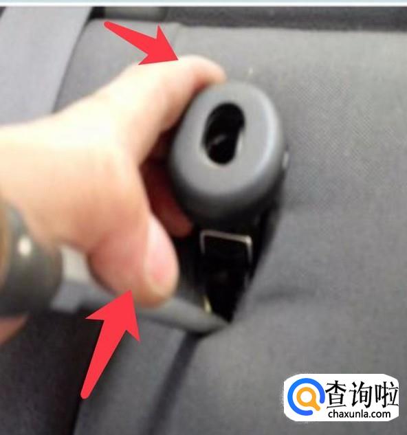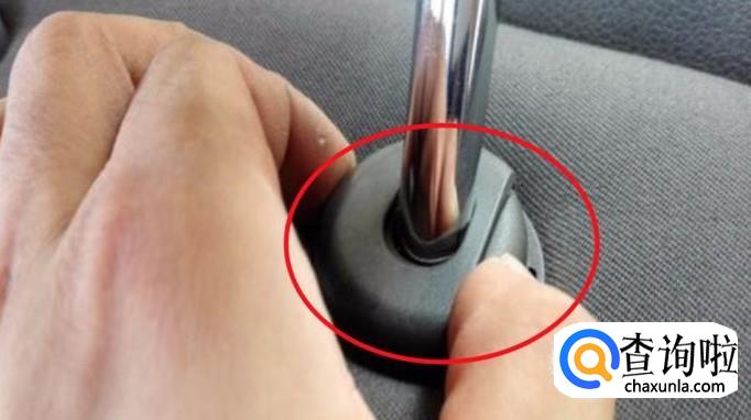 先调节我们汽车头枕的按钮用手按住头枕下方的按钮,可以调节这个头枕的上下距离.