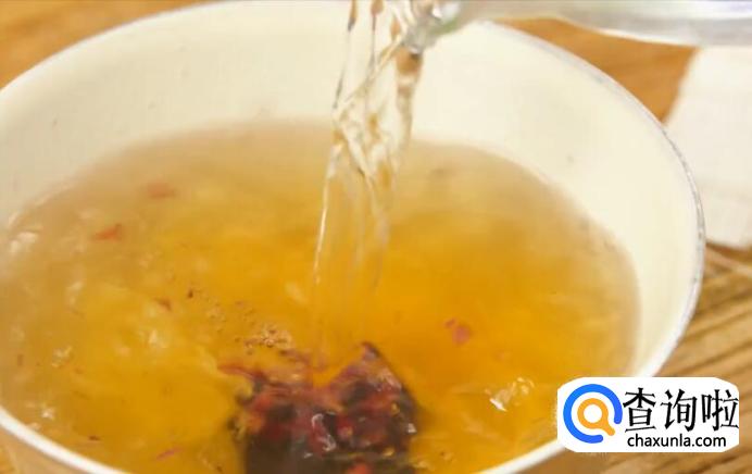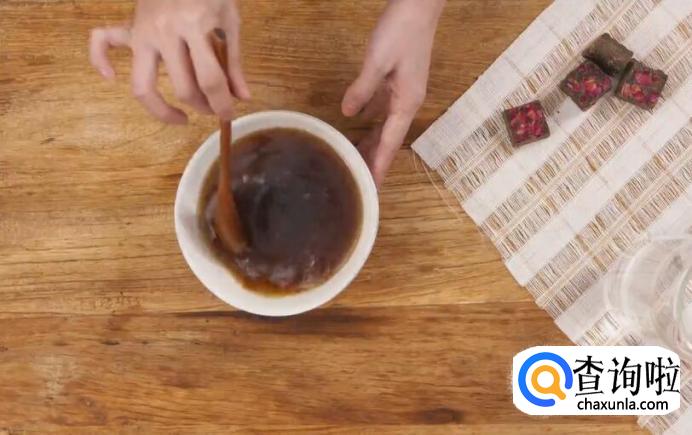 取一块玫瑰红糖放入锅中,加少许水熬至粘稠,备用。