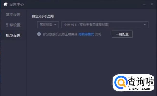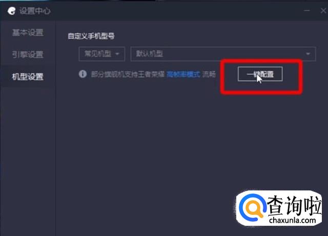 接下来切换到机型设置界面,右侧下拉框中选择常见机型,然后点击一键配置按钮,如下图所示