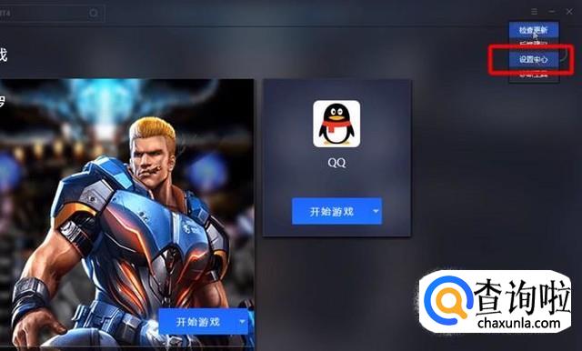 首先登录腾讯手游助手以后点击右上角的设置中心,如下图所示
