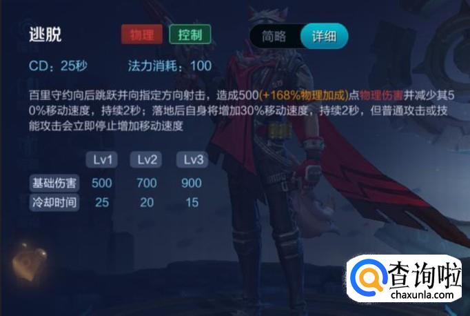 三技能逃脱,百里守约向指定地方射击,逃脱敌人的追击。三技能加闪现逃脱几率更大哦!