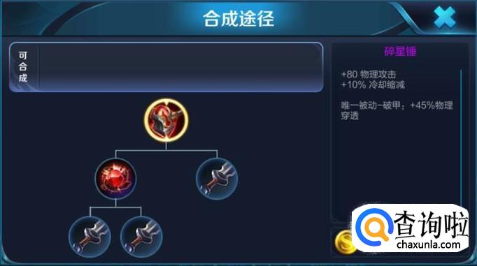 碎星锤能增加百里守约的物理穿透,大大增加百里守约的攻击力,还能缩短技能CD