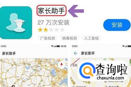 点击之后手机端会弹出一个名为家长助手二维码图片,我们使用自己的手机扫描该二维码,然后在手机上安装对应的APP,这样即可时刻关注孩子的位置了;