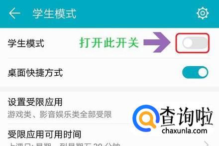 系统默认的学生模式是关闭的,如果我们是给孩子配备华为手机,那么就要首先打开学生模式开关,如图一;不过家长们需要给此模式设置密码才行...
