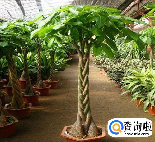 发财树学名瓜栗,形似伞状,树干苍劲古朴,茎基部膨大肥圆,其上车轮状的绿叶辐射平展,枝叶潇洒婆娑,极其自然美,观赏价值很高。尤其用其打编后栽培利用,提高了观赏价值,增强了装饰效果。同时由于其对光的适应性强,较耐阴,栽培养护简单,极适合室内栽培。