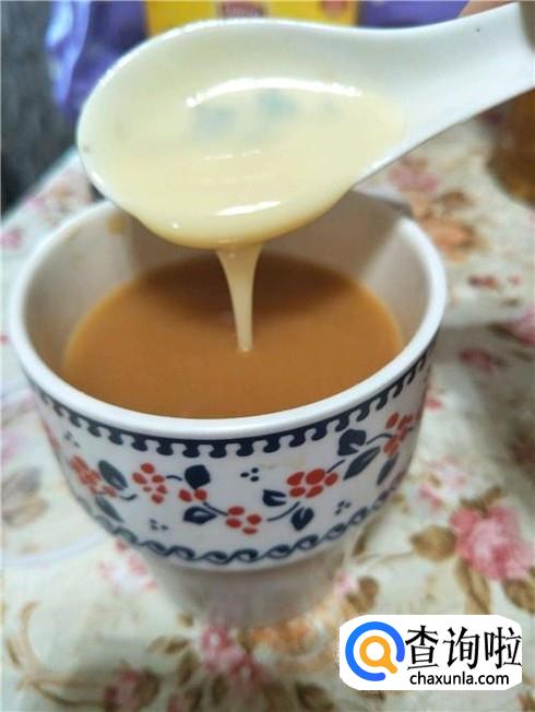 水要分两次倒入,而且水不能倒太多,倒太多,咖啡就不浓了。最后加入少许炼奶,一杯浓香的速溶咖啡就泡好了。