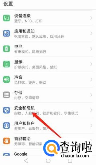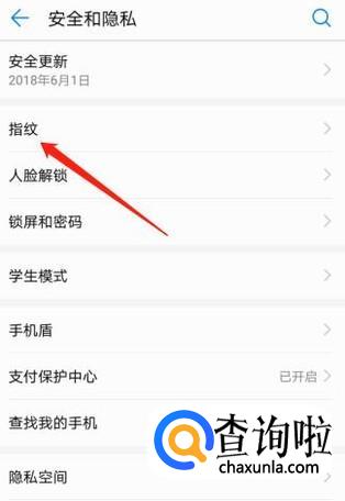 在“设置”菜单中点击“安全与隐私”,然后在“安全与隐私”下点击“指纹”。