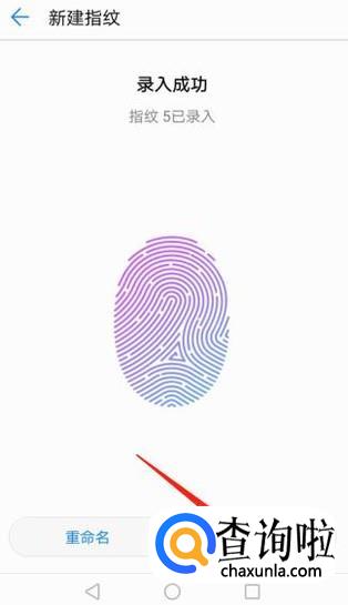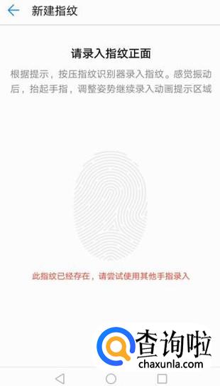 然后根据提示,将手指放在手机背面的指纹解锁圈里,录入指纹,录好后点击“确定”即可。