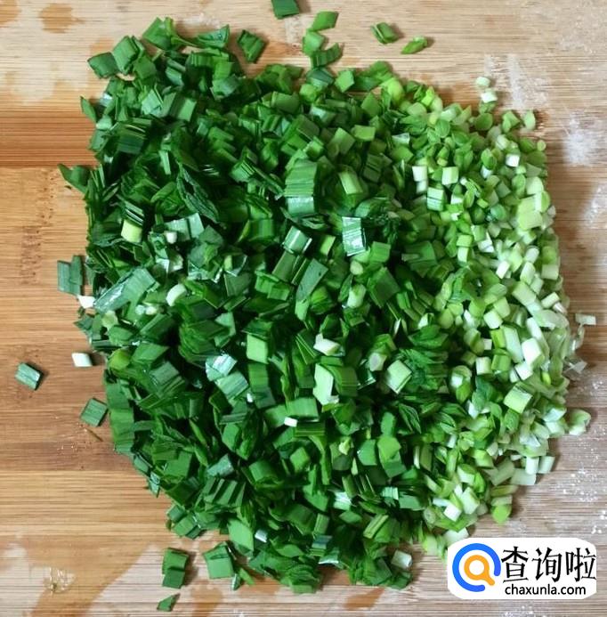 韭菜择去老叶子清洗干净后控干水分切成韭菜末备用