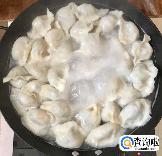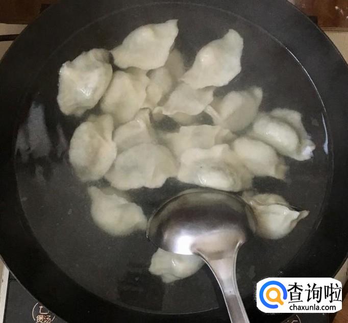 锅中加水煮至沸腾后下入包好的饺子推散防止粘锅底,煮沸后点两次凉水分别煮开即可关火