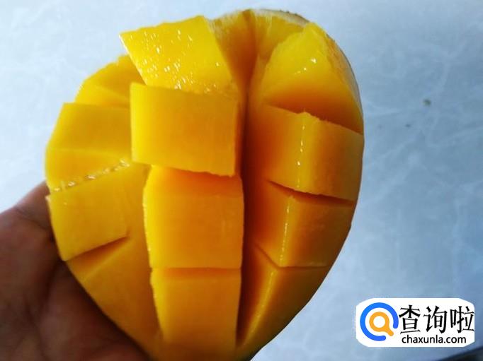 把芒果切开,然后把果肉起出来。