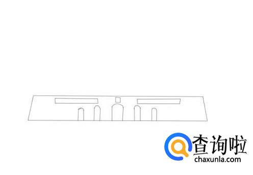 先画出天安门的墙体,然后在墙体上画出门洞,如图所示: