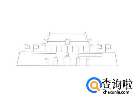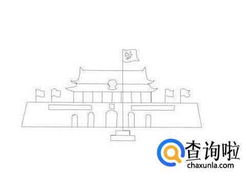 最后在天安门的前面再画出我们的国旗在,这样天安门就画好了,如图所示: