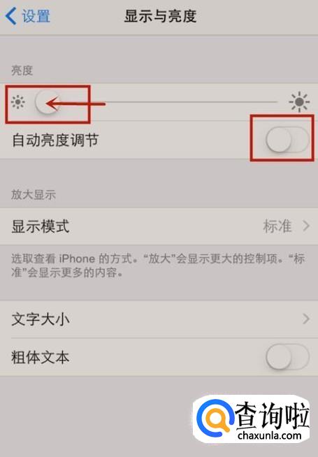 接着我们来到一个昏暗的地方将亮度调节到最低并关闭亮度自动调节按钮,如下图所示。
