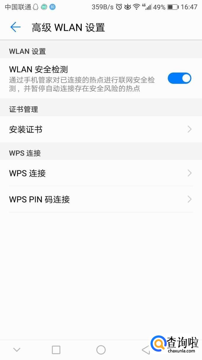 在wlan高级设置中打开wlan安全检测。