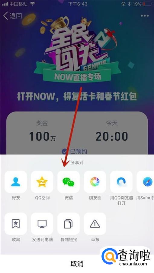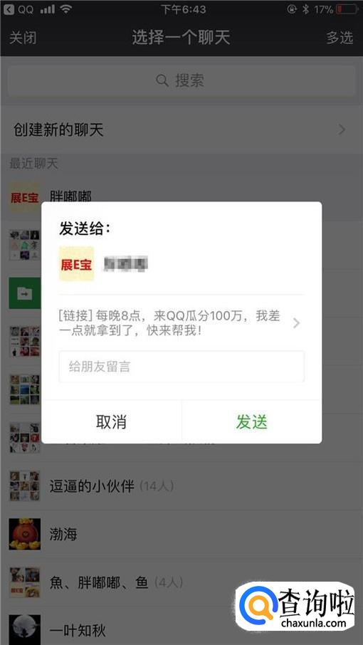 接着选择你的好友并点击发送就可以了。如果你的好友也参加了全民闯关活动,你将获得一张复活卡。