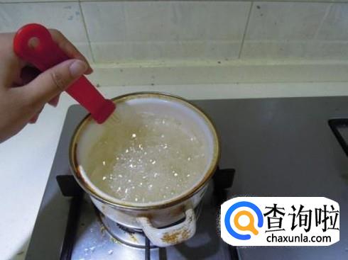 将(根据自己喜欢的甜度)冰糖和水按比例用小锅,开小火熬至粘稠,做成糖浆。