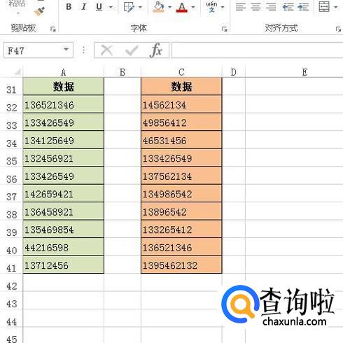 例如下图中的两个表格数据,接下来找出这两表格相同的数据。