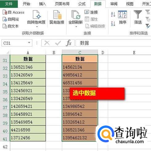 把C31:C41这区域单元格选中,鼠标点:数据,这选项卡,下面弹出的内容中再点:高级