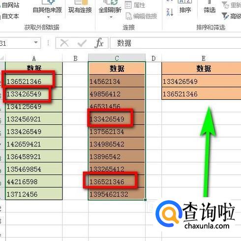 Excel中如何快速找到两表的相同部分