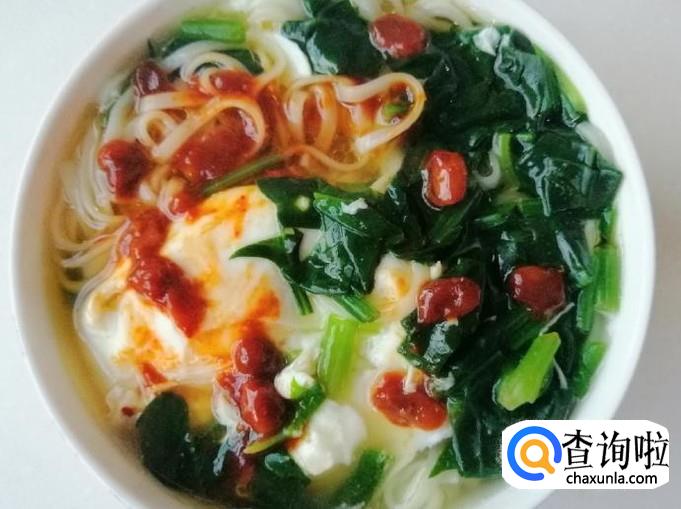 所用的面条厚度不一样,熟的时间也不一样,最好品尝熟了再放入菠菜,菠菜开锅就能熟,等菠菜全入汤中后加入适量食盐。