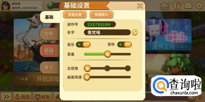 进入“游戏设置”后,选择“高级”并进入,如图所示