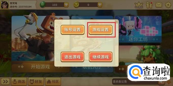 进入游戏后,在游戏首页点击右上方“设置”按钮,如图所示
