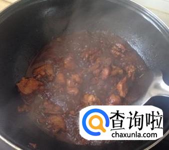 等锅中的汤汁减少很多时,用筷子扎一下鸡腿,如果很容易就扎透了,说明鸡腿熟了,就可以关火了。