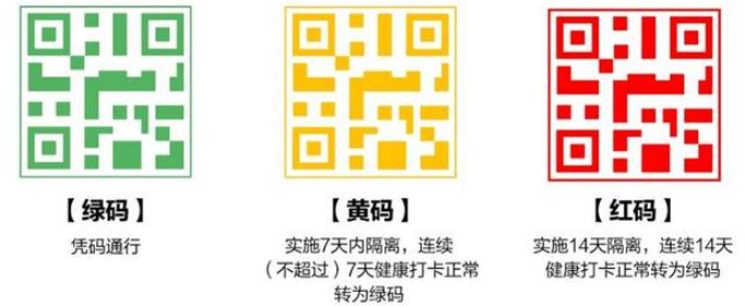 健康码分为三种:绿码可以直接进入,红码集中隔离14天,黄码隔离7天以内。健康码系统已经形成一套标准,可根据不同地区需求,结合各地疫情防控需要快速推出。通过健康码实现了一码就医、预约挂号、一键急救、心理援助、健康证明、健康档案等多个健康应用。