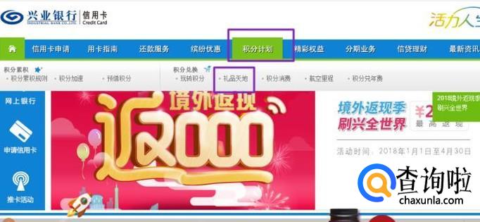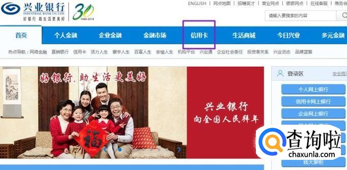 首先,我们点击打开电脑上面的浏览器,然后登陆兴业银行的官网,点击官网中的信用卡,如图所示;