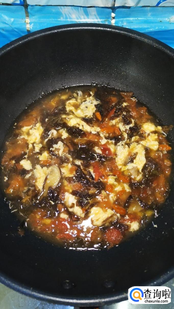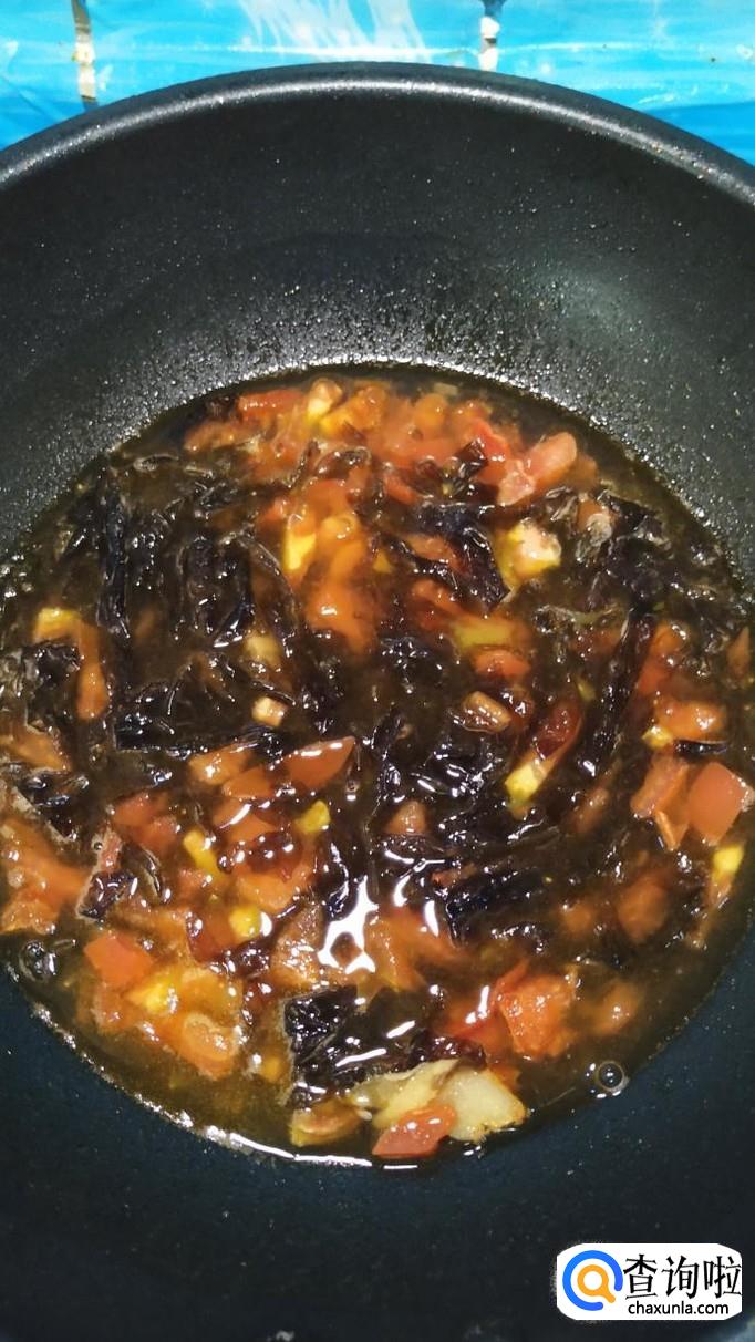 加入一碗清水,大火将水烧开,然后加入提前泡好的紫菜,搅拌均匀。