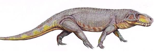 但是,云贵两地的三叠纪海相石灰岩中不仅埋藏着大量此类海洋生物化石,还出现相当数量的陆生爬行动物化石,例如形似蜥蜴、快速运动时甚至可以仅靠一对长而有力的后足“飞奔”的原龙类巨胫龙,外表如同小型鳄鱼的早期主龙类等,这在世界范围内都是十分罕见的现象。