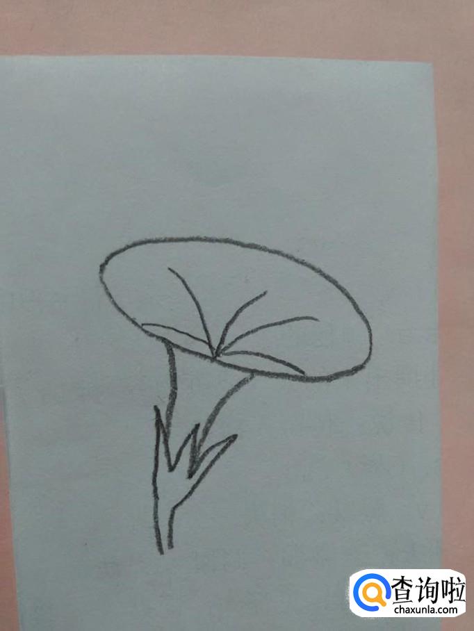 先用铅笔画一个椭圆形,表示牵牛花的喇叭口。