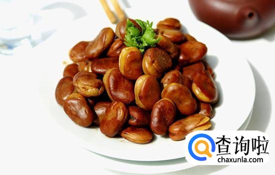关于五香豆,有这样一个传闻,“不尝老城隍庙五香豆,不算到过大上海”,足见五香豆的好吃与闻名。说的是旧上海时期,有一个名叫郭瀛洲的商贩,在城隍庙市上做生意,选用嘉定产的“三白”蚕豆,凭借着烧五香牛肉时“选料好、加工精”的经验,又在配料上大动脑筋,加入了进口香精和糖精,如此烧出来的五香豆又香又好吃,与别的商贩别有不同,因而很受大众欢迎。后来为了精益求精,又将铁锅换成了紫铜大锅,终于成功做出来了色香味俱全的极品蚕豆,并借机收摊开店,取名“郭记形兴隆号”,郭记的五香豆还在牛皮纸制作的包装袋上印刷了郭瀛洲的头像和双龙商标,随着经营扩大,他们的蚕豆开始大量对外批发,一时间沪上车站、码头、茶楼、酒馆、影剧院门口都出现了卖五香豆的商贩。1956年,“郭记兴隆号”更名为“城隍庙”五香豆。