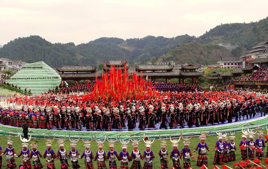苗族,是一个古老的民族,散布在世界各地,主要分布于中国的黔、湘、鄂、川、滇、桂、琼等省区,以及东南亚的老挝、越南、泰国等国家和地区。苗族民间的传统节日较多,有苗年、四月八、龙舟节、吃新节、赶秋节等,其中以过苗年最为隆重。苗年相当于汉族的春节,一般在秋后举行。节日早晨,人们将做好的美味佳肴摆在火塘边的灶上祭祖,在牛鼻子上抹酒以示对其辛苦劳作一年的酬谢。盛装的青年男女跳起踩堂舞。除了历史性的节日外,绝大多数在秋收之后或春耕大忙之前的农闲季节举行。但由于自然因素、社会和宗族差异的影响,苗族传统节日具有明显的地域性,表现出不同的特性。