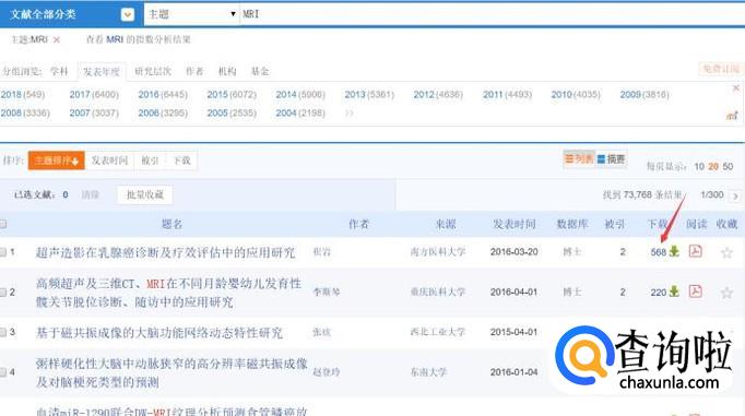 在知网首页选择你想找得论文类别,或者直接搜索,比如MRI。