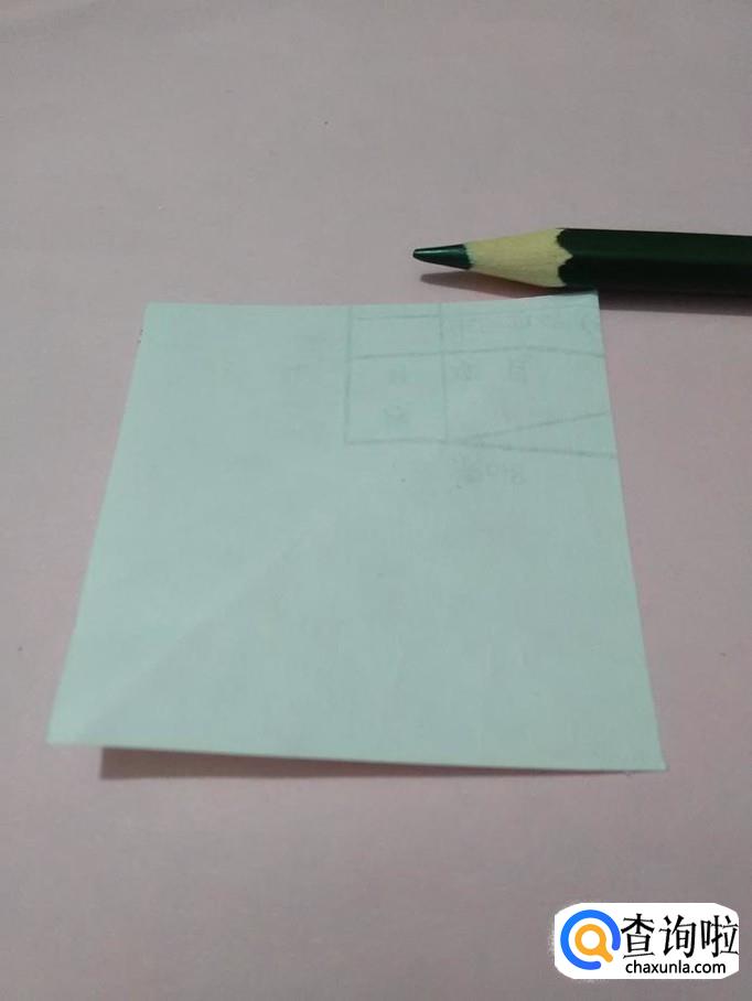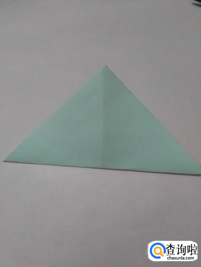 将正方形的底角向上对折,折成三角形。