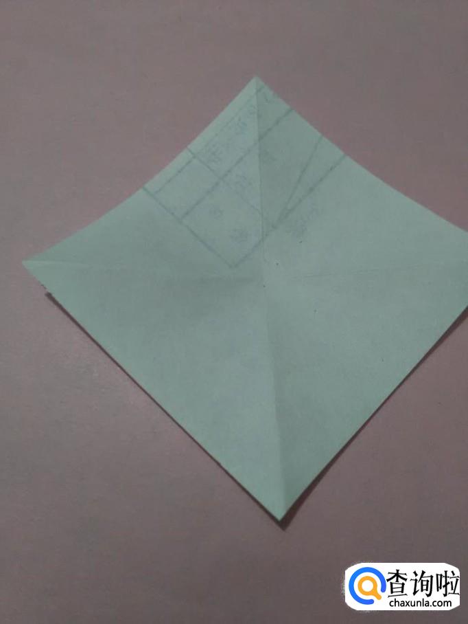 将正方形的角与角对折后打开,得到中间的两条线。