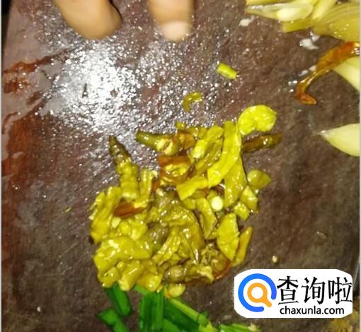 酸辣椒切成小片,藠头切碎或切成小块,葱叶切成段备用。