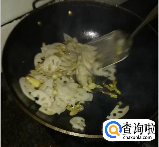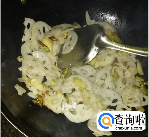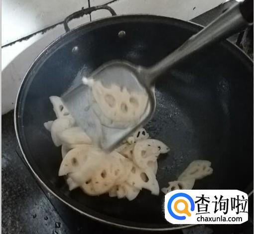锅中加入油,待油温度合适后,加入藕片翻炒,炒至藕片五分熟。
